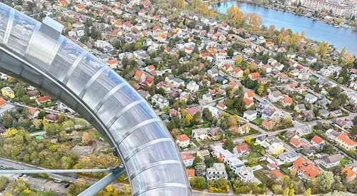 Die neu eröffnete Donauturm-Rutsche in Wien ist ein Kunstwerk und Abenteuer zugleich. Geschaffen vom internationalen Objektkünstler Carsten Höller, wurde sie am 3. Oktober 2023 in einer aufsehenerregenden Hubschrauberaktion installiert. Mutige Besucher können nun aus 165 Metern Höhe rasant auf die 150 Meter hohe Aussichtsebene hinabrutschen. Dieses von transparentem Polycarbonat umhüllte und beleuchtete Rutschenerlebnis bietet neben Nervenkitzel auch einen herrlichen Blick über Wien.